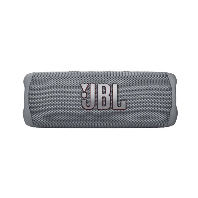 El parlante JBL Flip 6 Bluetooth en color gris ofrece un diseño elegante y un sonido potente para disfrutar de tu música favorita en cualquier lugar.