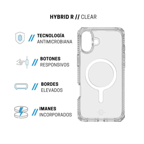 Case ItSkins Hybrid R Clear con MagSafe para iPhone 16 - Transparente