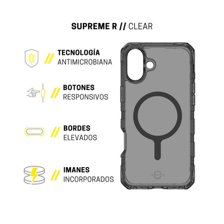 Case ItSkins Supreme R Clear con MagSafe para iPhone 16 - Negro