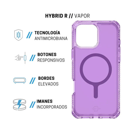 Case ItSkins Hybrid R Vapor con MagSafe para iPhone 16 Pro - Morado